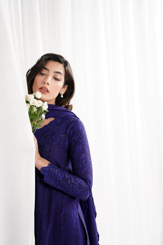 DEEP PURPLE KALIDAAR LUXURY EMBROIDERED 3PCS SET NPA3-25414 (EID 2025 READY TO WEAR)