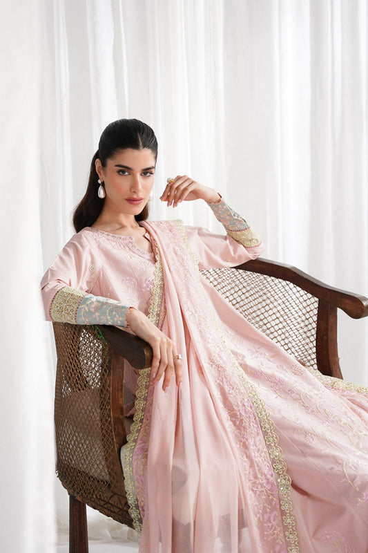 PASTEL PINK LUXURY EMBROIDERED 3PCS KALIDAR SET NPA3-25413 (EID 2025 READY TO WEAR)