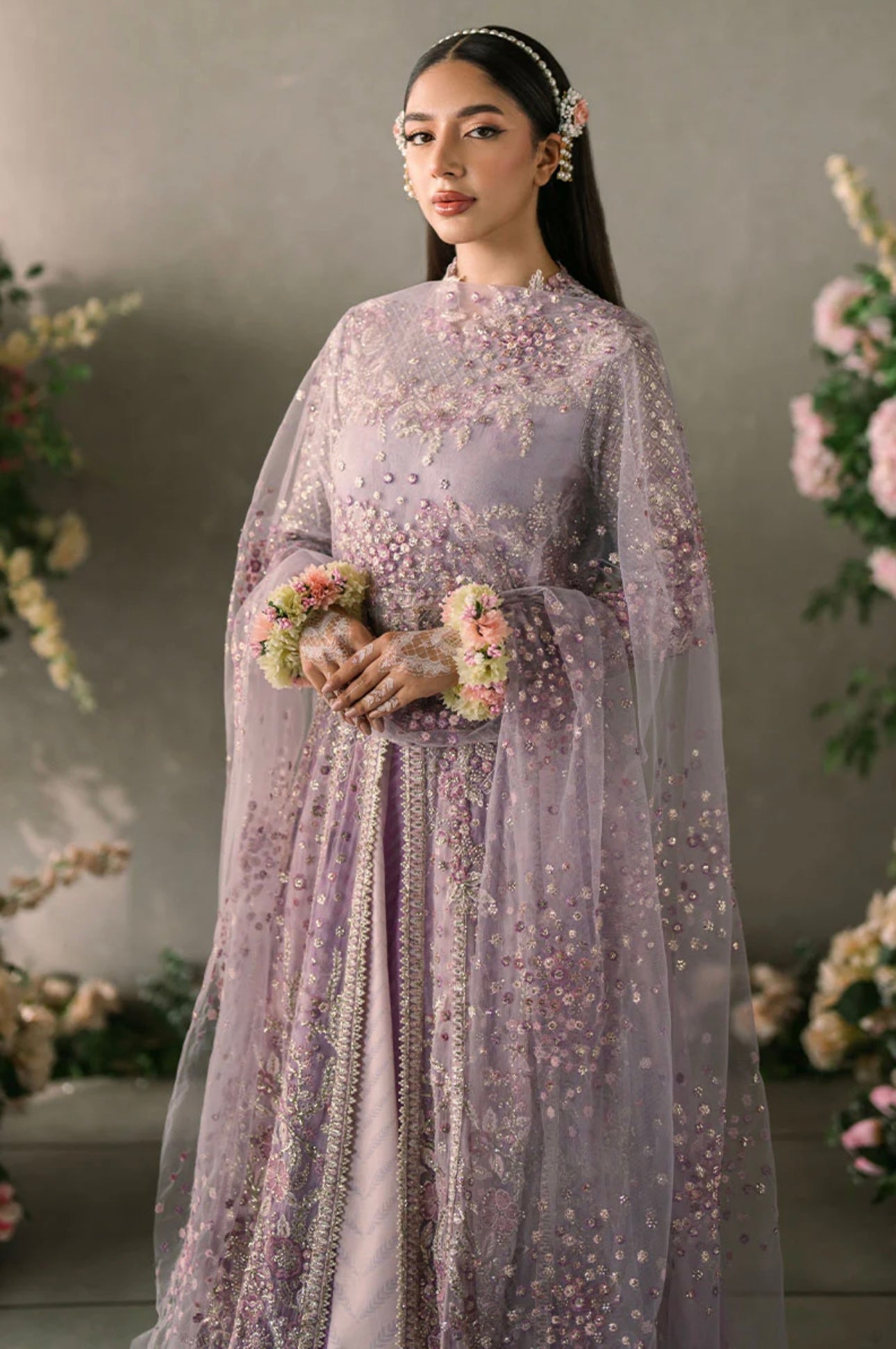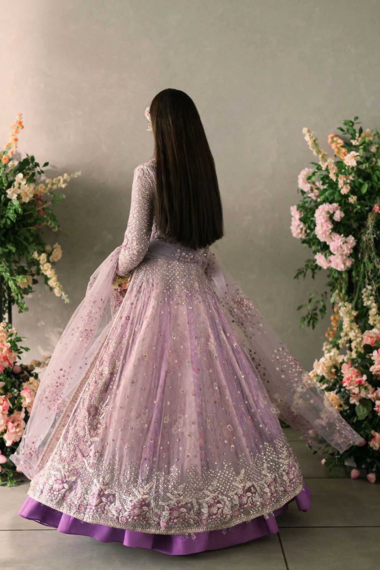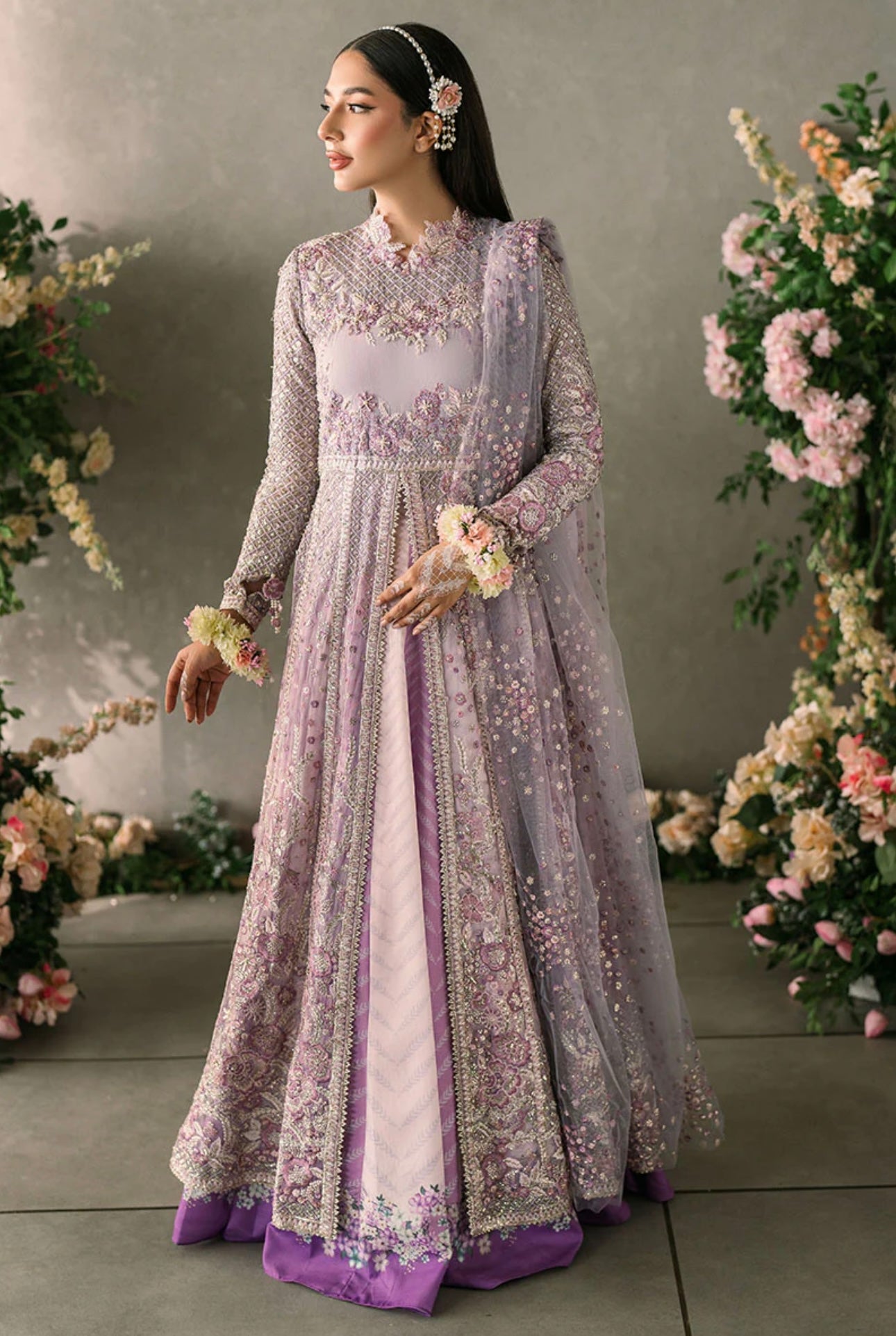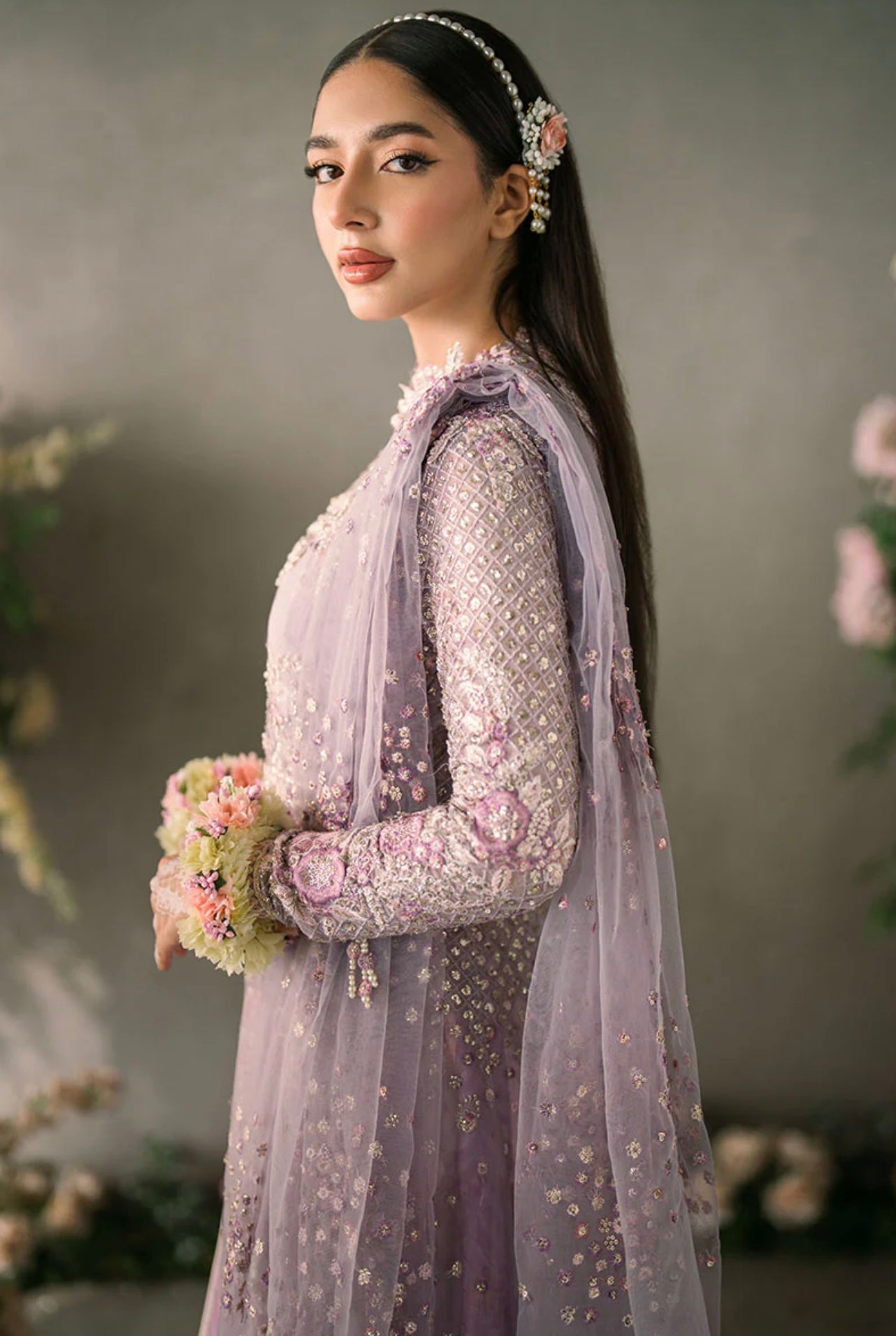 Alyana —a true statement of elegance and artistry. Featuring hand-embellished details on delicate chiffon, this ensemble combines timeless sophistication with modern flair. The look is elevated by a net dupatta, intricately embroidered and adorned with sequins, adding a touch of shimmering grace.
