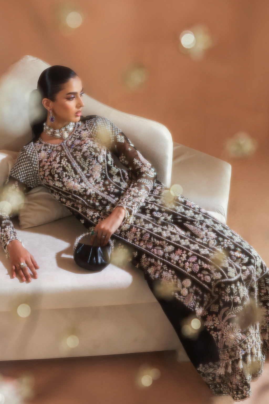 Grace finds its bold expression in Astral, a striking black ensemble illuminated with intricate stone and pearl work. Radiating sophistication and allure, it captures the essence of timeless charm with a modern edge. A true masterpiece for moments destined to leave an unforgettable impression.