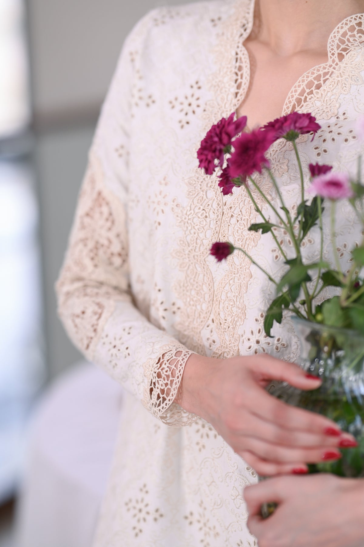 This exquisite three-piece luxury lawn outfit is the perfect blend of elegance and comfort, ideal for any special occasion. The top is made of finely embroidered lawn fabric in a soft off-white color, adorned with intricate thread work that adds a refined touch. Its delicate design exudes timeless beauty, making it suitable for a variety of events. The accompanying dupatta is a work of art with its soft pastel hues and detailed embroidery along the borders, offering a graceful and sophisticated finish to the ensemble. The matching bottom, crafted from breathable material, completes the outfit with its straight-cut design, ensuring both comfort and style. This luxurious set effortlessly combines traditional grace with modern flair, making it a standout choice for any wardrobe.