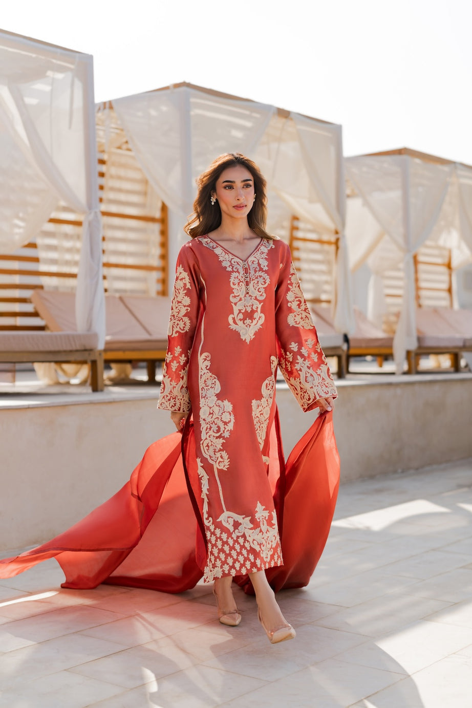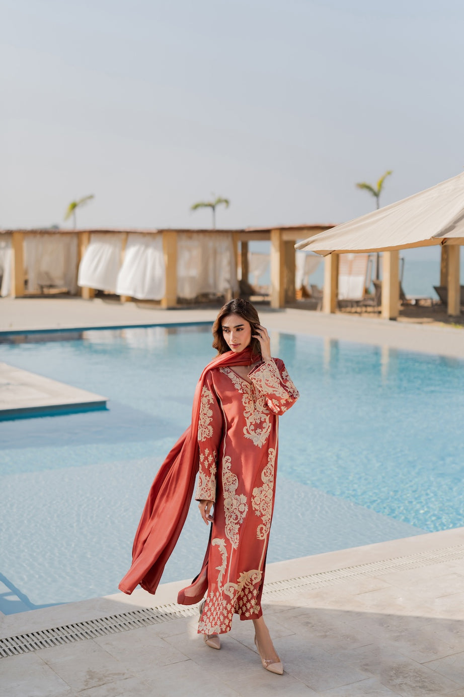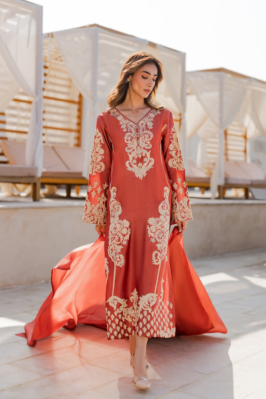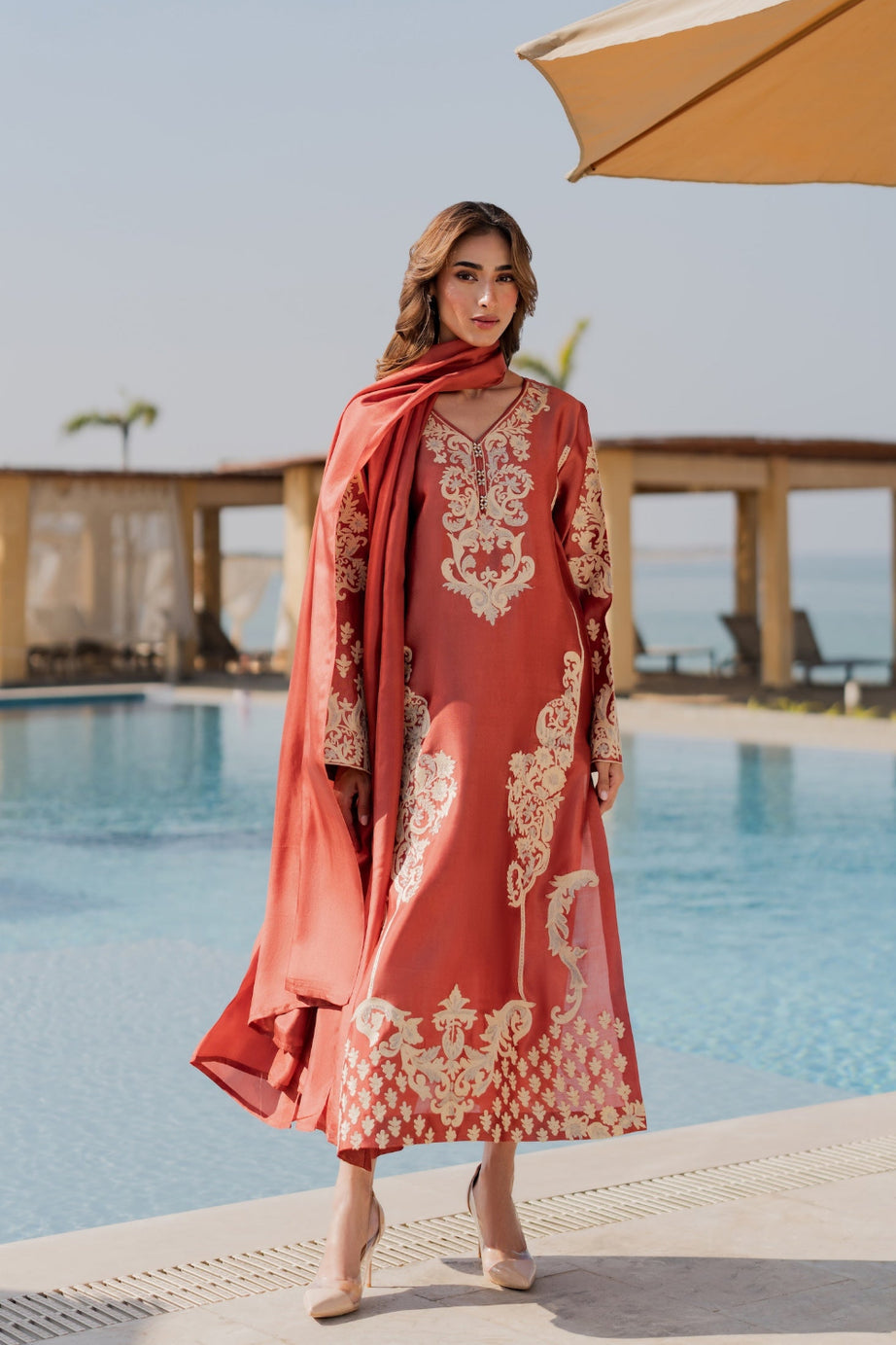 This stunning burnt orange outfit exudes warmth and timeless elegance.