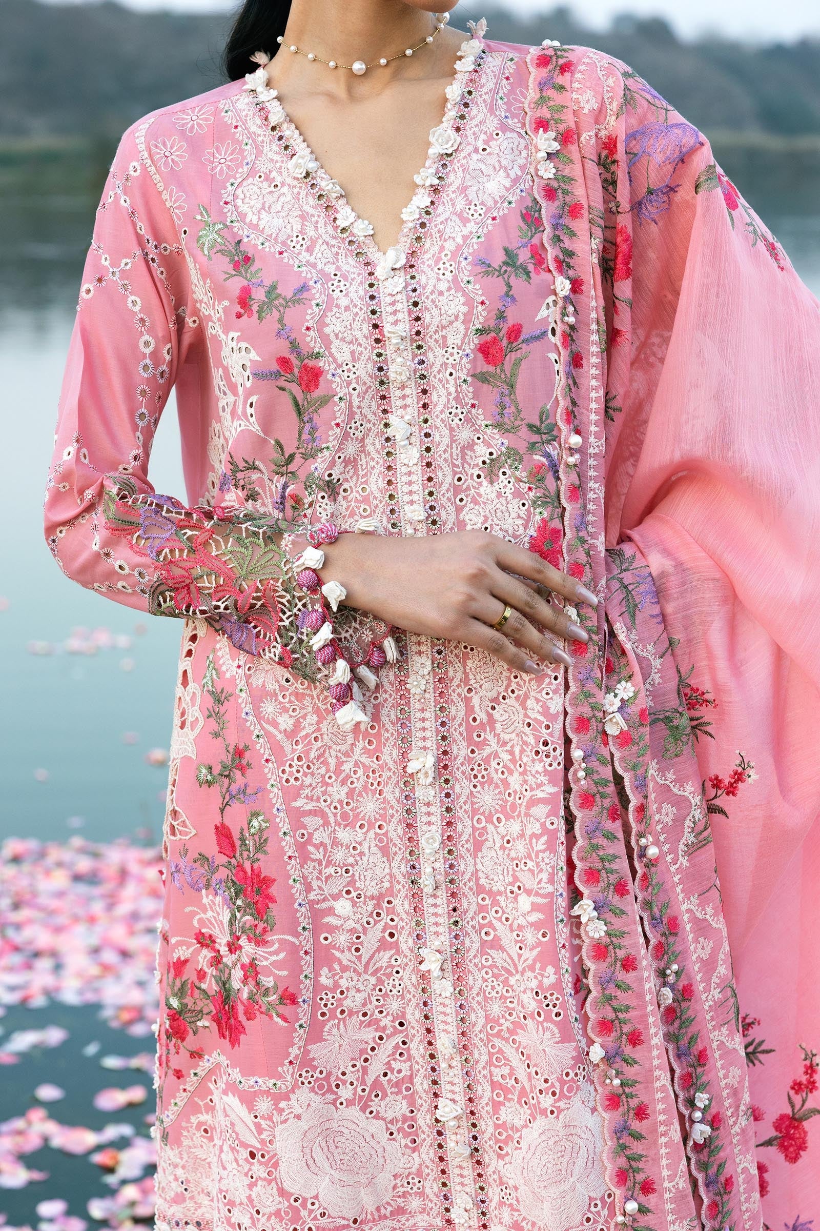 Thoughtfully crafted for enduring allure, this floral-embroidered silhouette pairs seamlessly with an elegant drape and minimal cotton pants, resulting in a composition of refined balance and charm.
