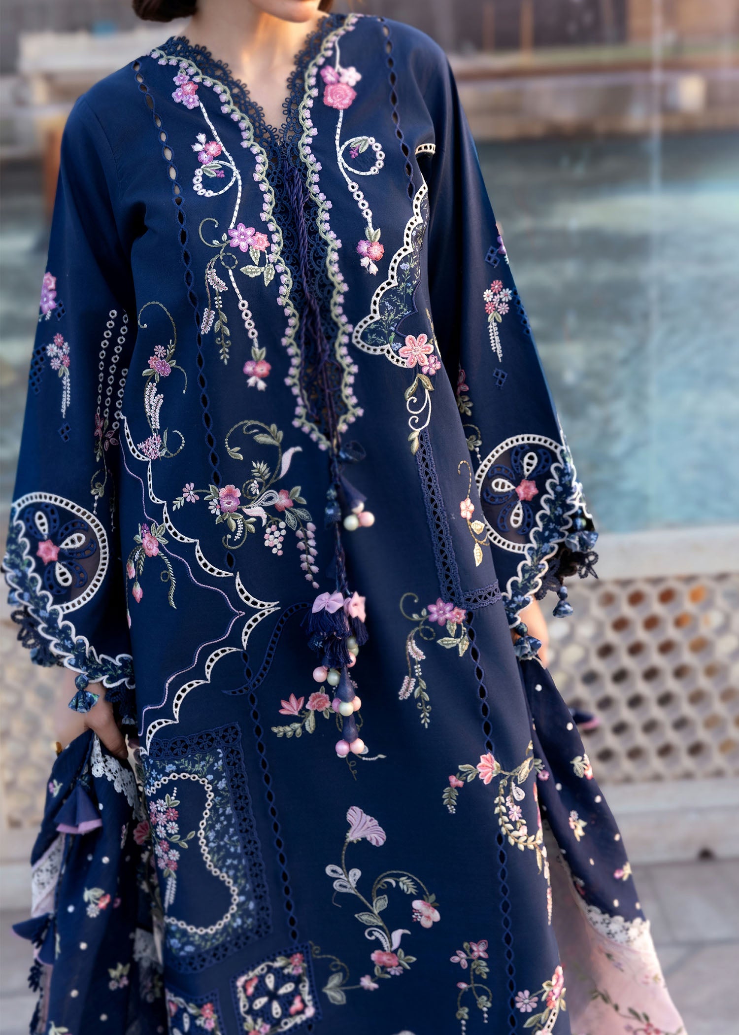 - Embroidered Motif On Organza For Sleeves.