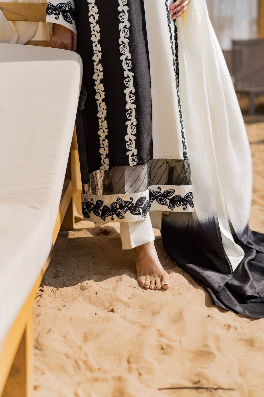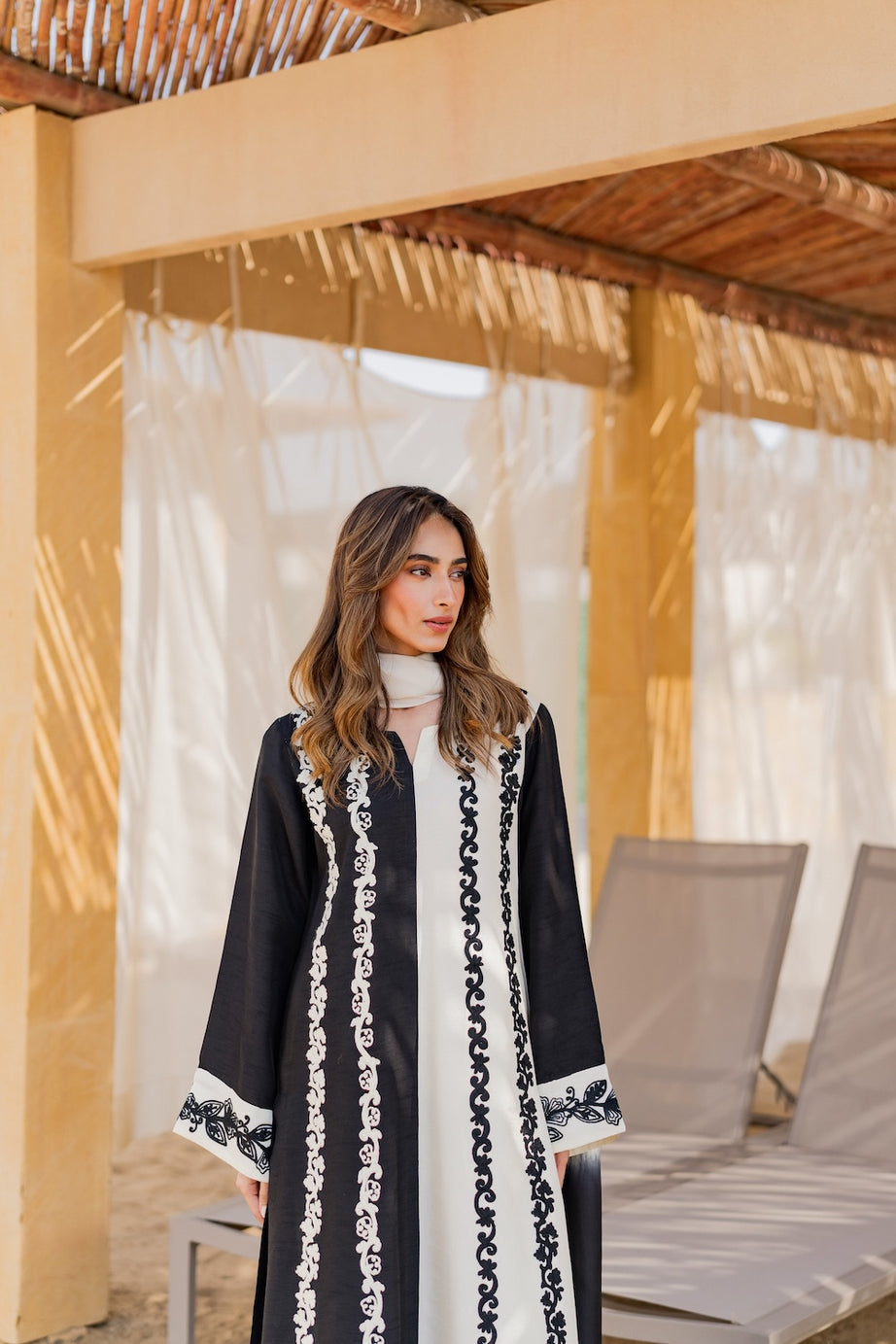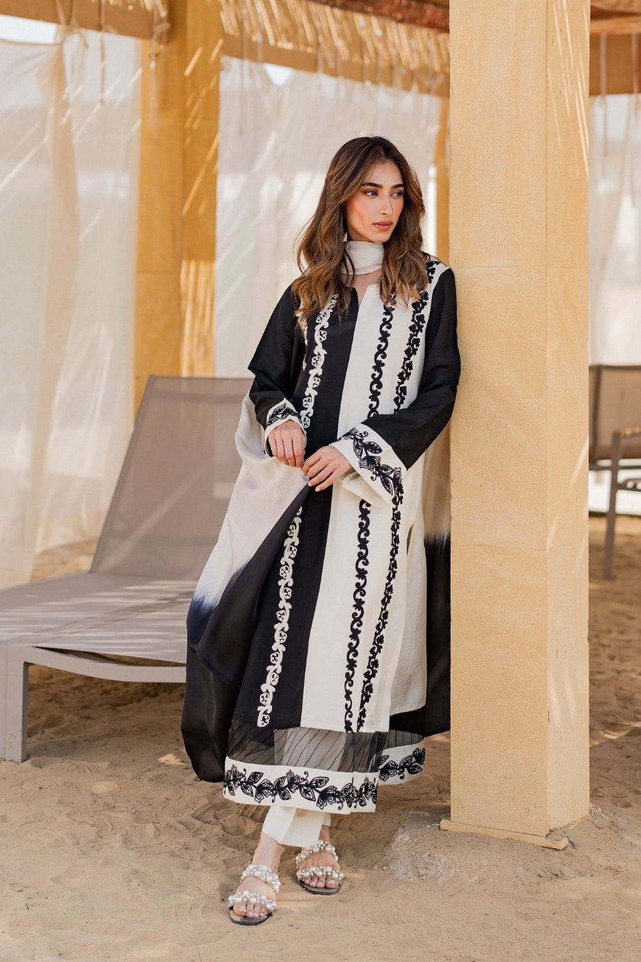 A perfect choice for contemporary festive wear with a timeless monochrome appeal.