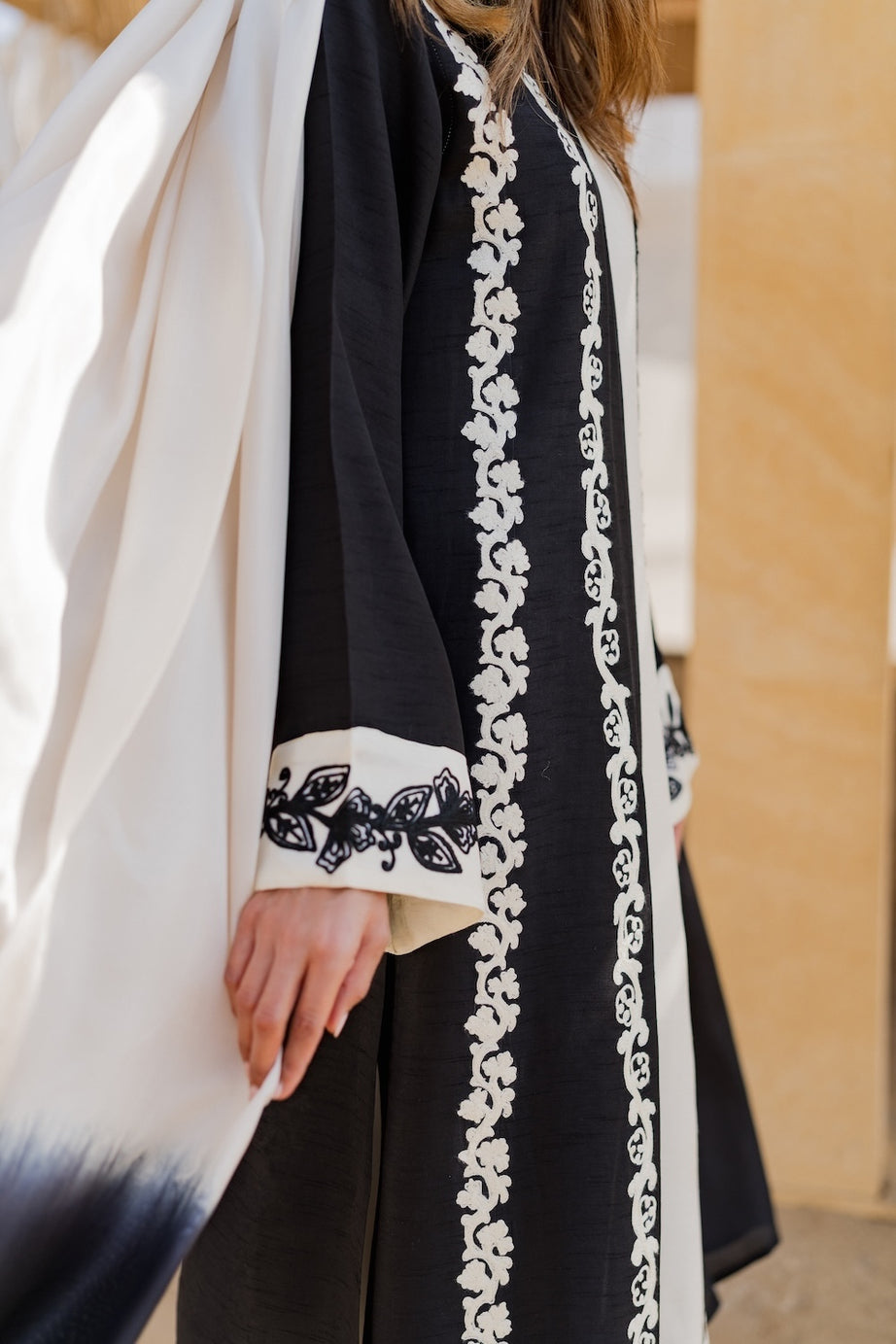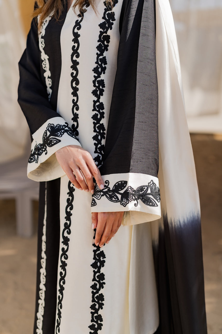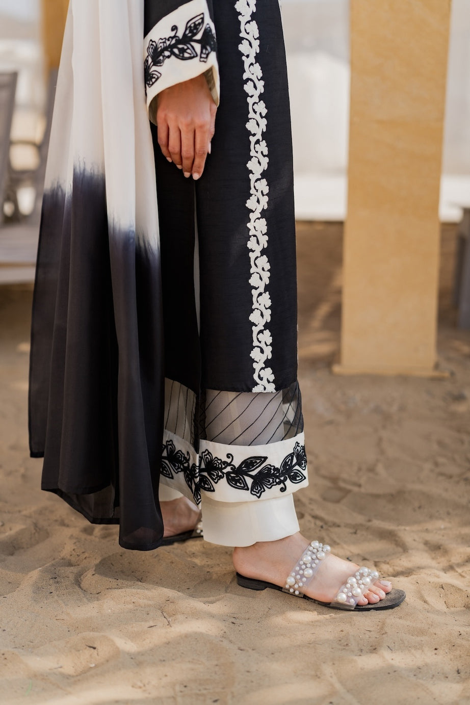 A perfect choice for contemporary festive wear with a timeless monochrome appeal.