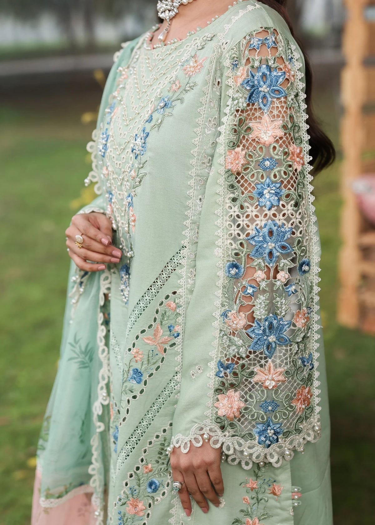 - Embroidered Chikankari Sleeves (Lawn): 0.66 MTR