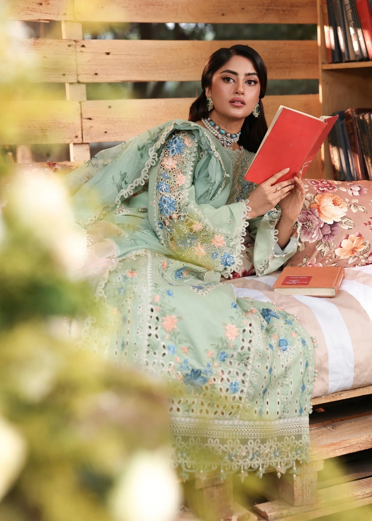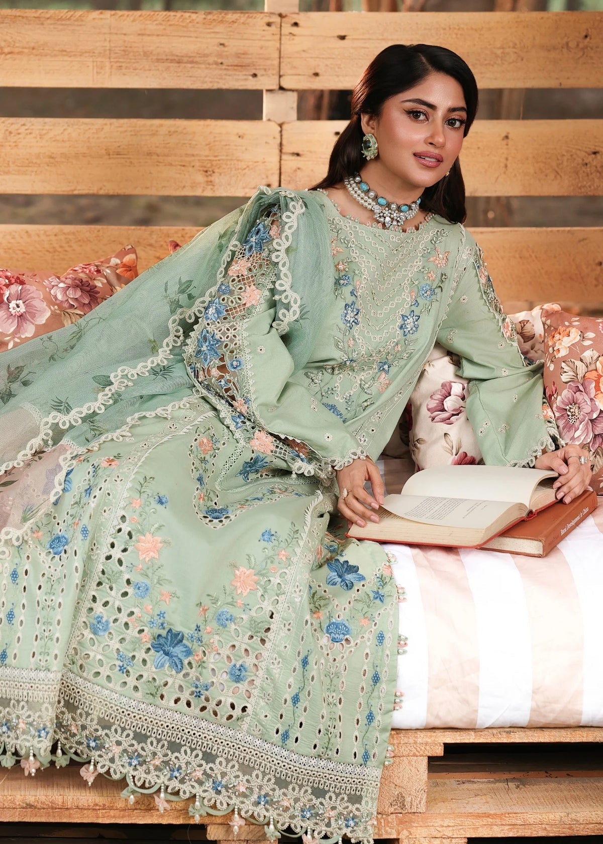 - Printed Dupatta: 2.75 Yards (Woven Net)