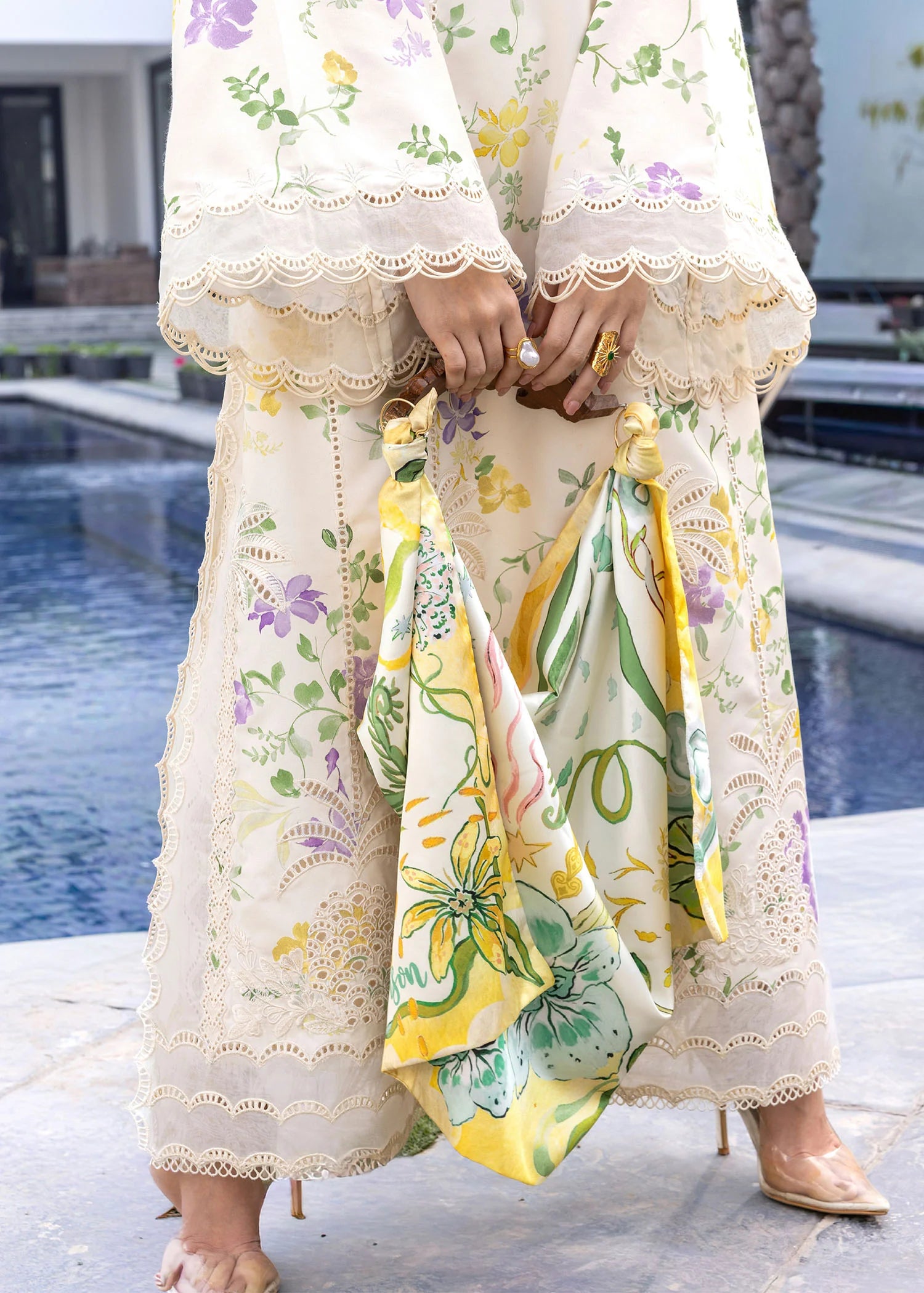 - Printed And Lace Embroidered Lawn Front Center Panel.