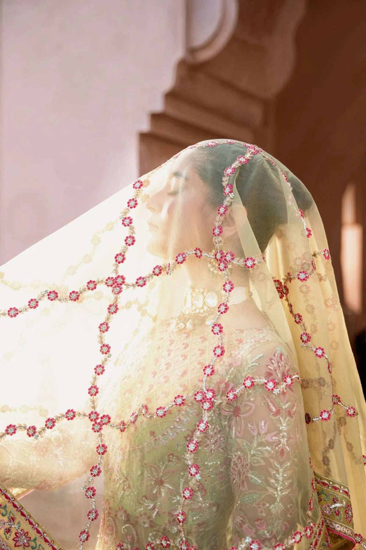 - Organza Embroidered Dupatta 4 Side Border 8.5 Yards