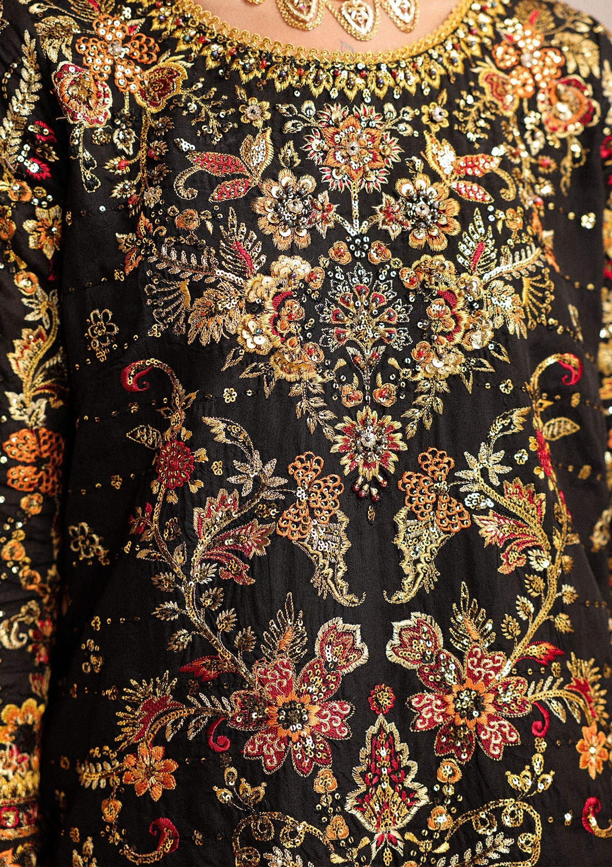 - Embellished + Embroidered Organza Sleeves Border